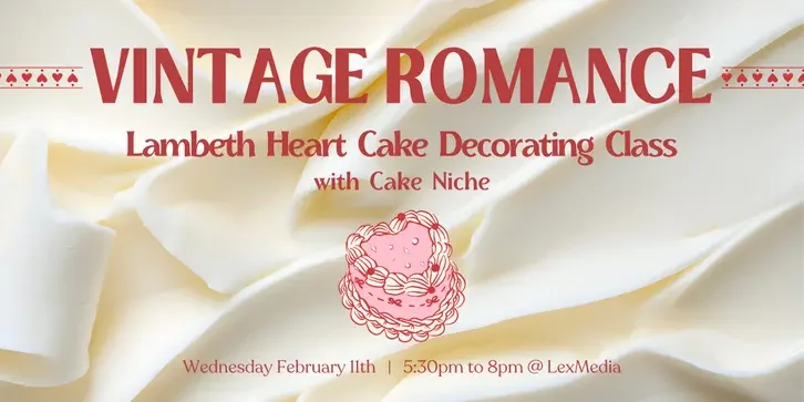 Celebrate Valentine’s Day with a touch of vintage elegance in this hands-on cake decorating class! Learn to create a Lambeth-style heart cake with beautiful piping, frills, and classic charm. Each participant will receive a prepared 5-inch two-layer cake, with options for chocolate or vanilla flavor and filling. Customize your frosting colors and decoration style to make your cake uniquely yours—romantic, bold, or anything in between. No experience needed—just come ready to have fun, learn new techniques, and leave with a stunning edible Valentine for someone special (or yourself)!