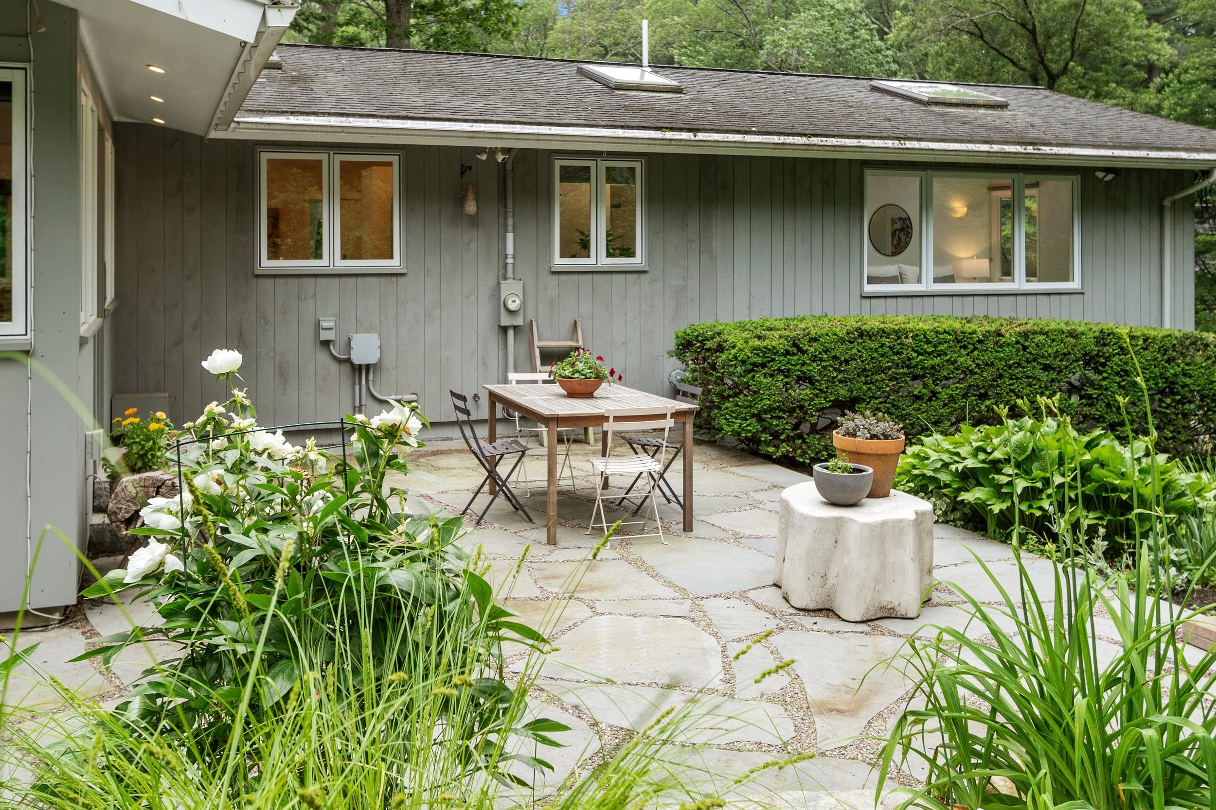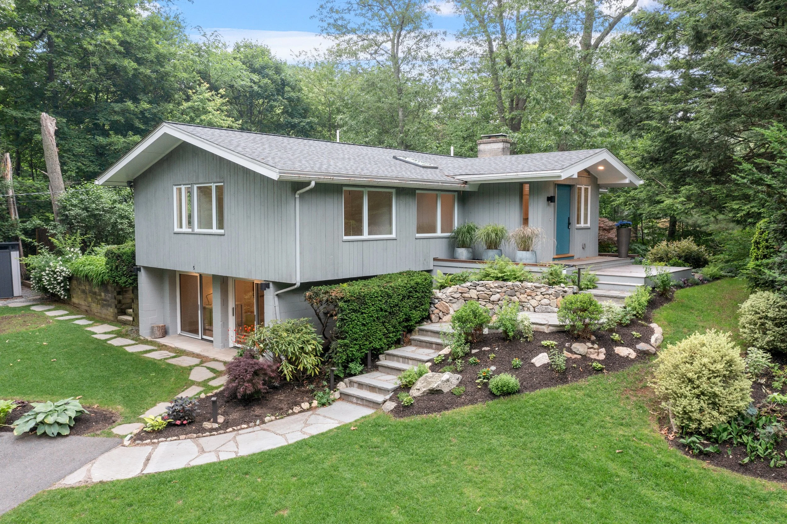 Unique opportunity to own this spectacular renovation of a Mid Century Modern, Peacock Farm home. This special home was restored in 2016 & updated by recent owners as well. It marries modern features like insulated glass, insulation, efficient heating & central AC, contemporary plumbing, electrical, fixtures & finishes, with the authentic style of the home. Privately sited on a lush, colorful, professionally landscaped, half acre of mature plantings, the home seems to melt into the greenery. Walls of glass, skylights, & windows galore bring the outside in just as intended by the original architect. Beautiful stone work, patios, granite steps & cascading water feature complete the exterior. Inside find a flowing, open floor plan, contemporary kitchen & bathrooms, hardwood floors, floor to ceiling wood burning fireplace, & a walk out lower level with its own secluded patio. All in a special neighborhood located near Wilson Farms, bike path, & Route 2 for commute to Alewife & Boston.